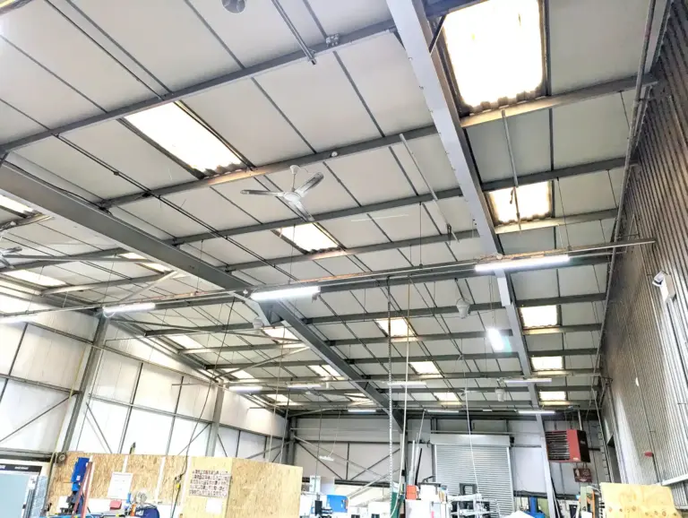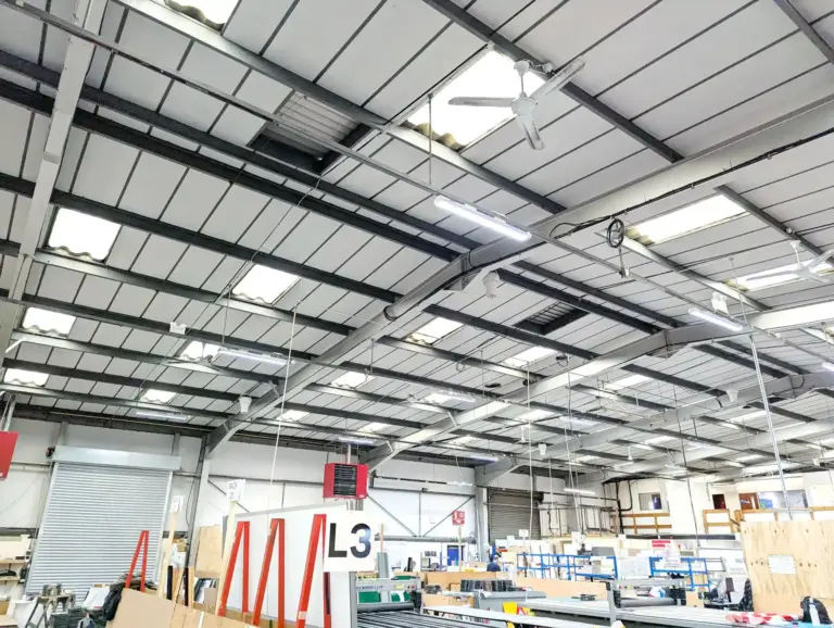 Following a free site survey and energy/carbon reduction estimate, Airius installed 14 Model 25 Standard Series destratification fans across the two workshop areas, both fitted with independent speed controllers.